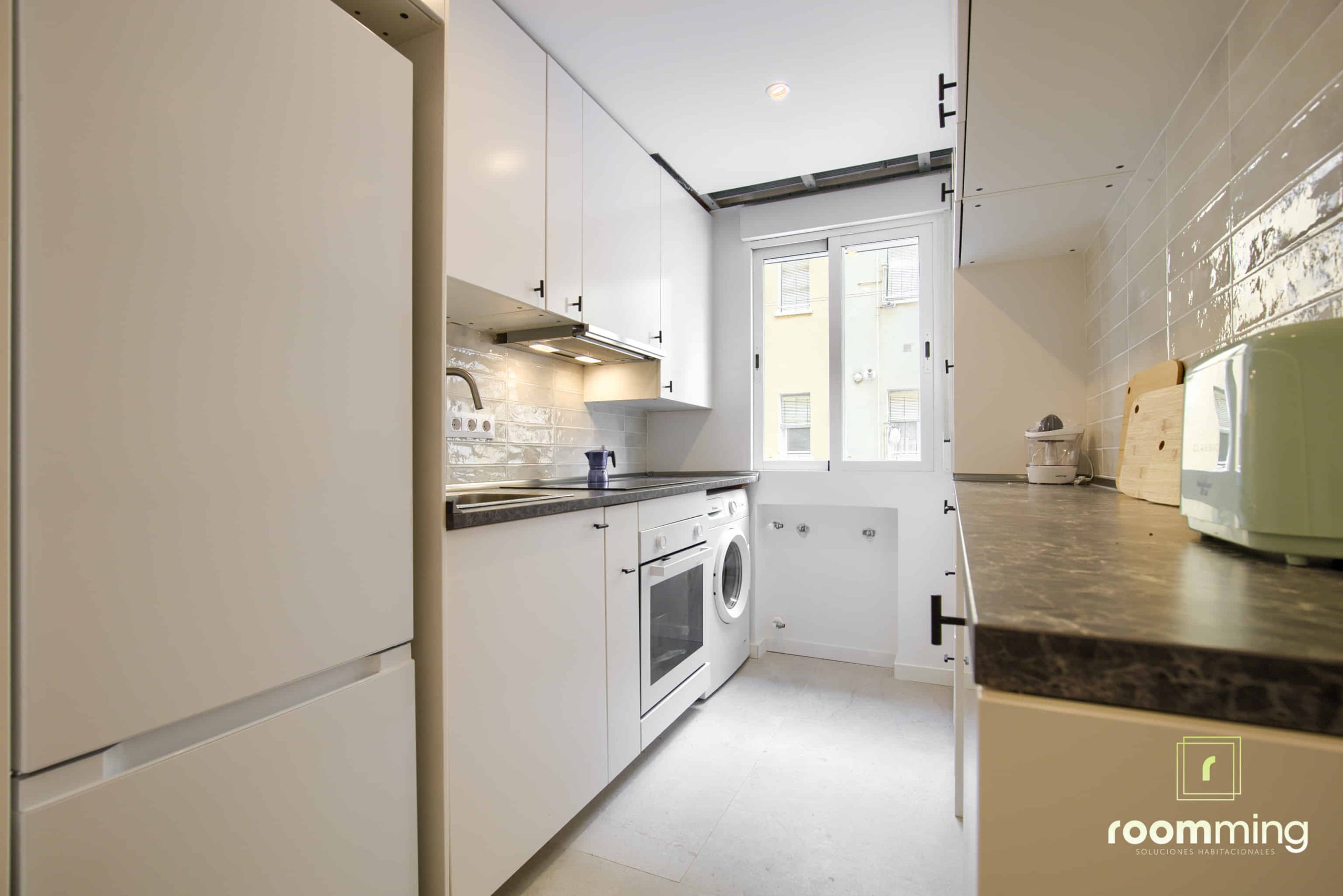 - Cocina completa con horno, microondas, vitrocerámica, nevera grande, campana extractora, cubertería, vajilla, etc…