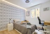 Habitación confortable y exterior, dentro de la vivienda San Valero1. Situada la segunda, cuenta con todas las comodidades que todo estudiante puede demandar. Desde la cama con un colchón premium, canapé con gran almacenaje, escritorio + silla, hasta smart TV, climatización, caja fuerte, etc…