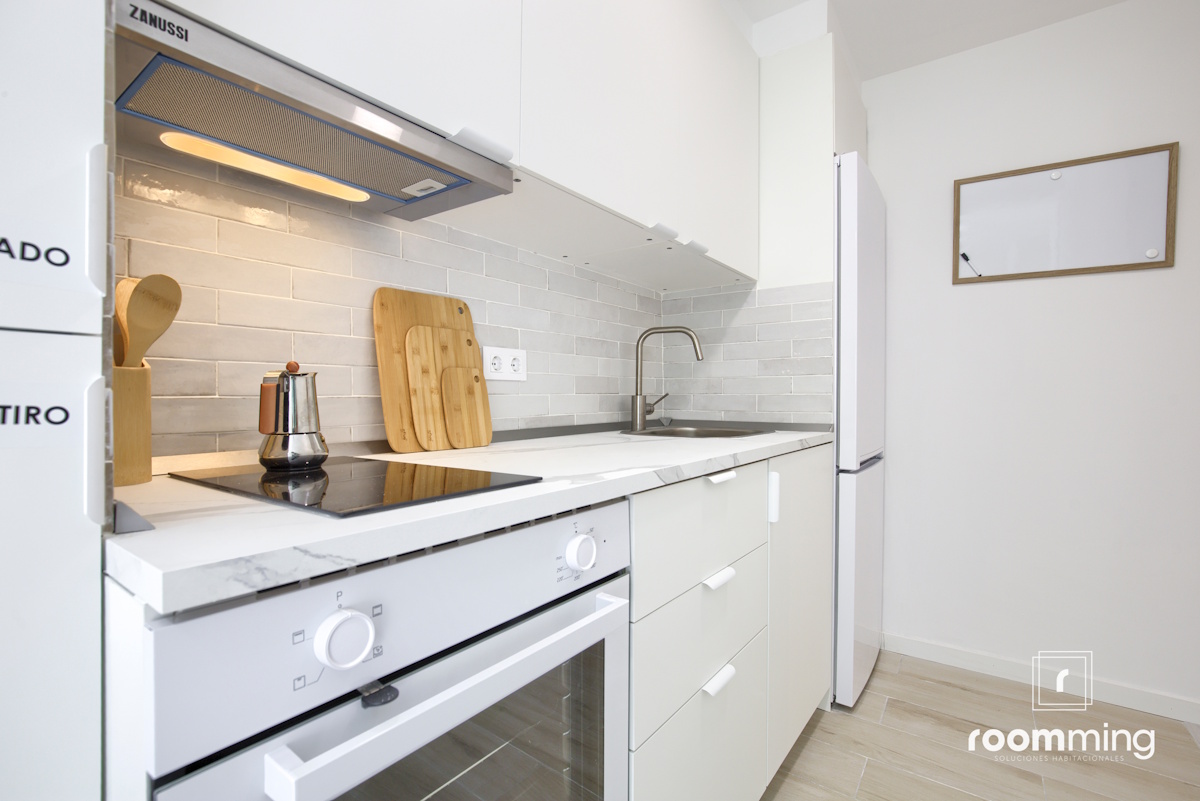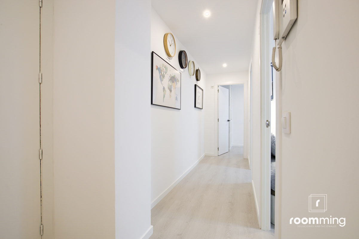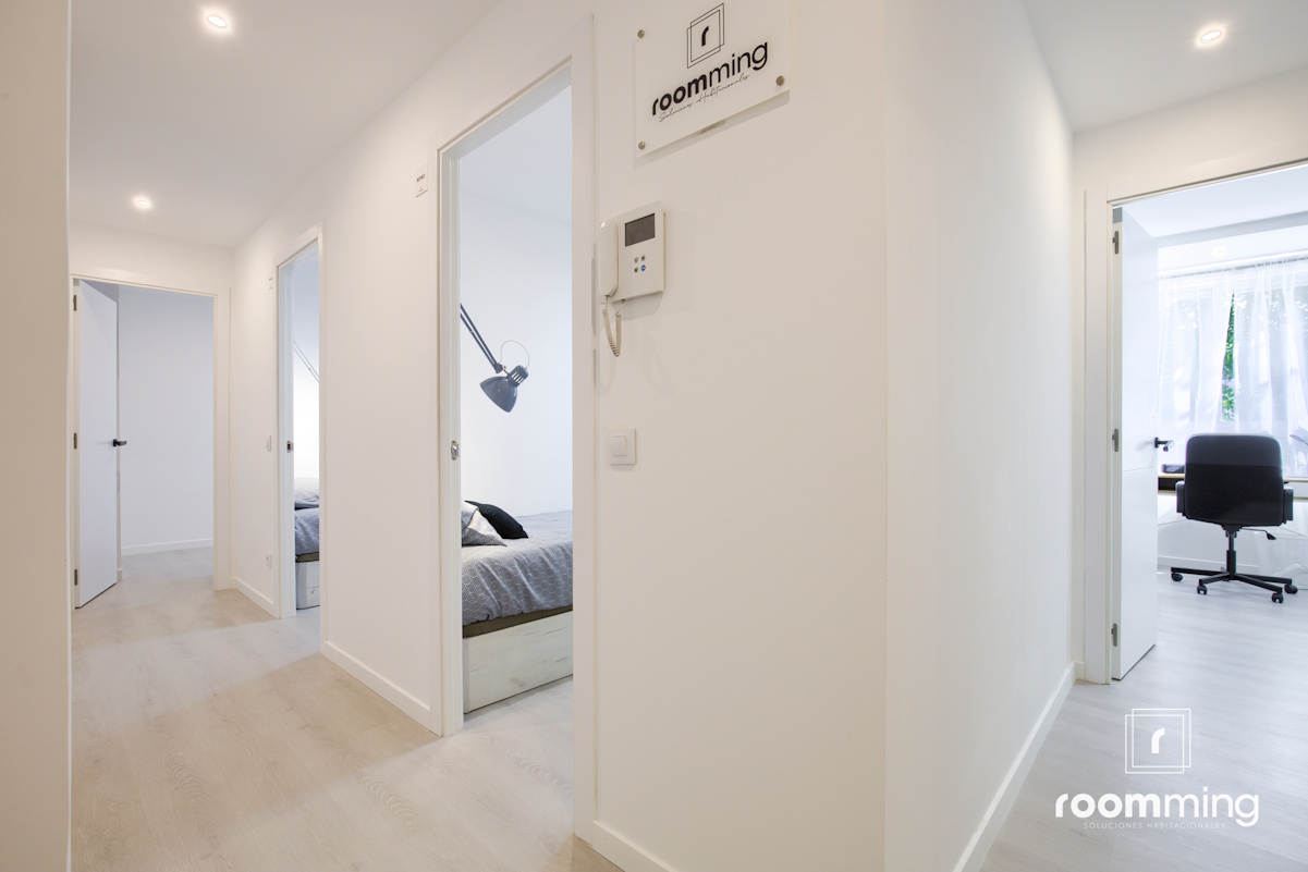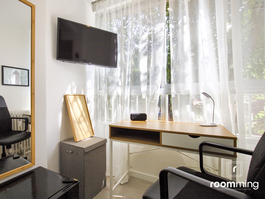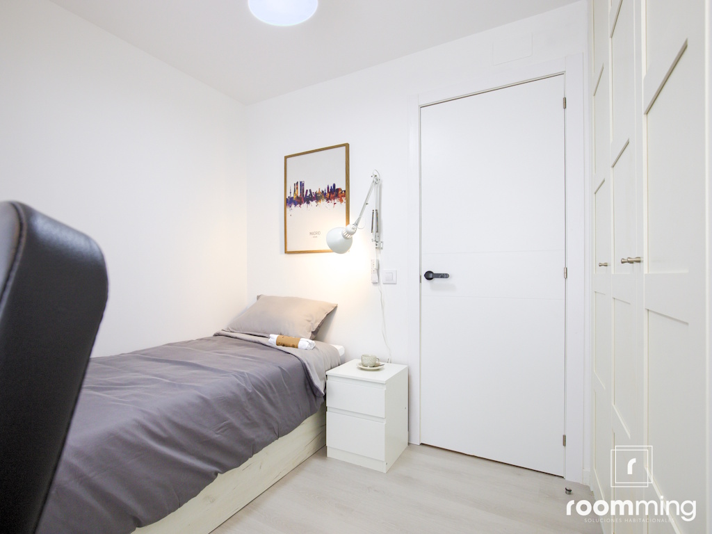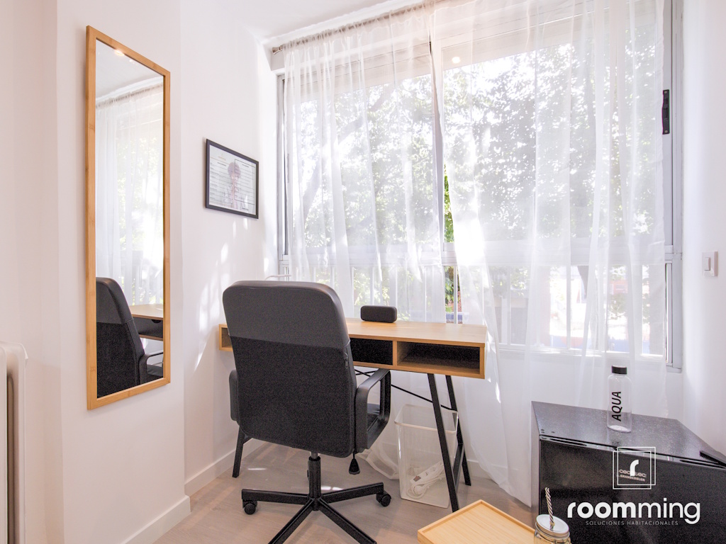 Habitación confortable dentro de la vivienda Emilio Ferrari 80. Cuenta con todas las comodidades que todo estudiante puede demandar. Desde la cama con un colchón premium, canapé con gran almacenaje, escritorio + silla, hasta smart TV, climatización, caja fuerte, etc…
